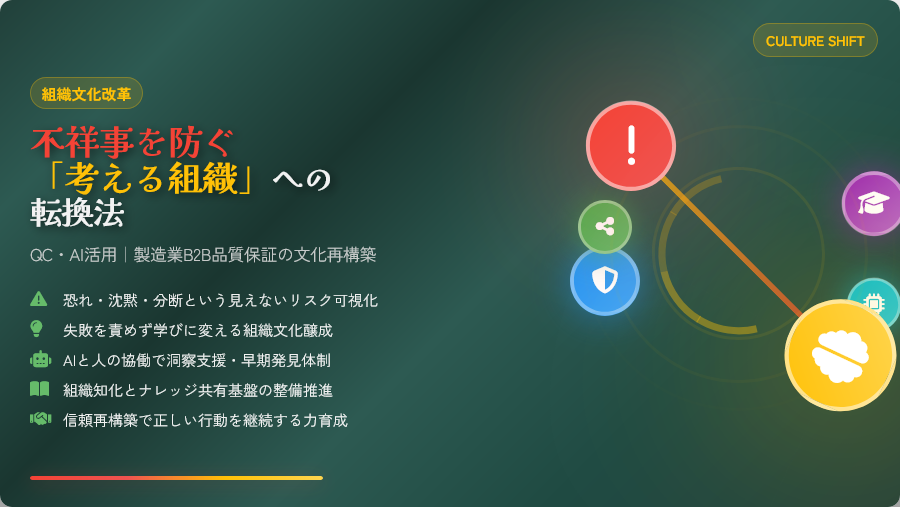 品質・コンプライアンスの課題は、改善手法だけでなく「文化の再構築」が問われています。
