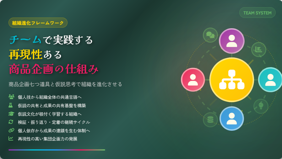 商品企画七つ道具を日常業務や社内教育へ組み込むことで、仮説文化が自然に根付いた学習する組織へと進化します。