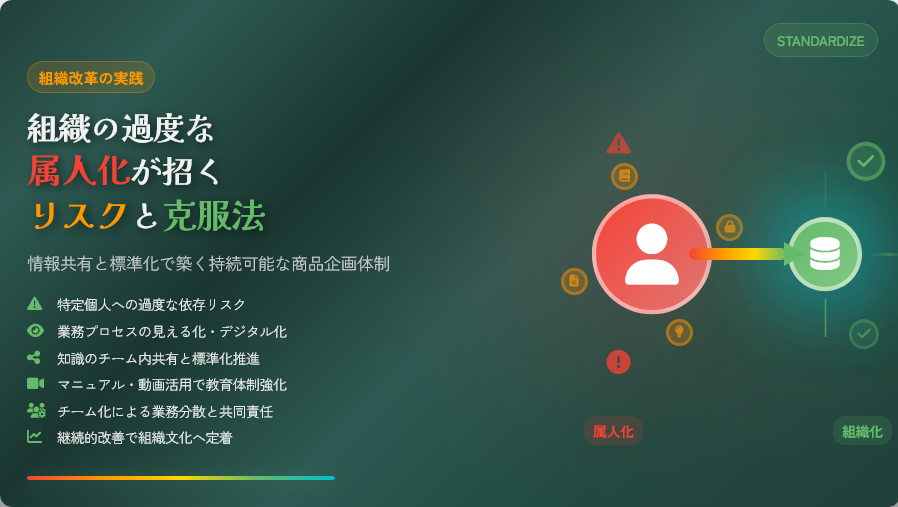 これらの取り組みが、属人化を解消し強靭な組織運営を可能にします。