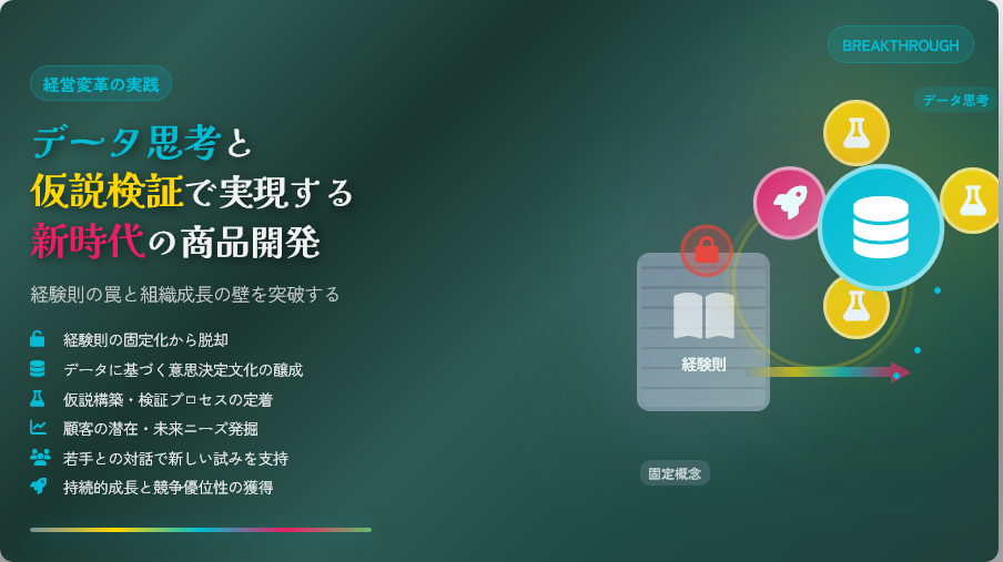 変革を進めるには「経験=絶対」から脱却し、新しい視点やデータを用いて仮説を構築・検証するプロセスが不可欠です。